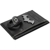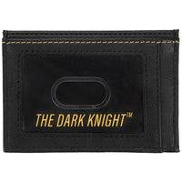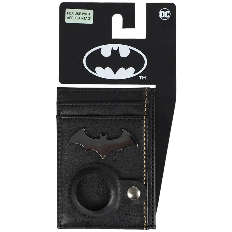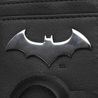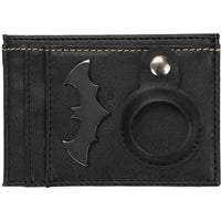 The sleek design features a metal badge logo of the classic Bat Symbol, along with screen-printed and debossed artwork that highlights the brooding essence of The Dark Knight. A built-in tracker pouch adds a layer of practicality, ensuring you can always locate your wallet with ease.
