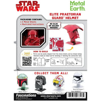 Star Wars - Elite Praetorian Guard Helmet Figure Model Kit (Steel, Moderate Difficulty) - Fascinations - Metal Earth Series brings to life the distinctive headgear of Supreme Leader Snoke’s formidable warriors. The Elite Praetorian Guard, recognized for their striking red armor and exceptional combat skills, serve as loyal enforcers of the First Order. This moderate-difficulty model kit faithfully recreates the helmet’s sleek, segmented design, making it a stunning display piece for Star Wars collectors and enthusiasts.