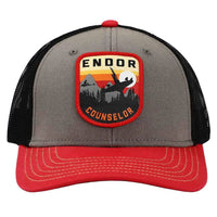Join the spirit of adventure with this Star Wars Endor Camp Counselor Washed Trucker Hat from Bioworld, the perfect accessory for fans of the iconic saga. Designed in a classic black, gray, and orange color scheme, this hat features a vintage-inspired Endor Counselor patch on the front, capturing the rugged charm of the forest moon where Ewoks and Rebels alike thrive. With its washed look and retro styling, this hat is a unique nod to the iconic Endor environment.
