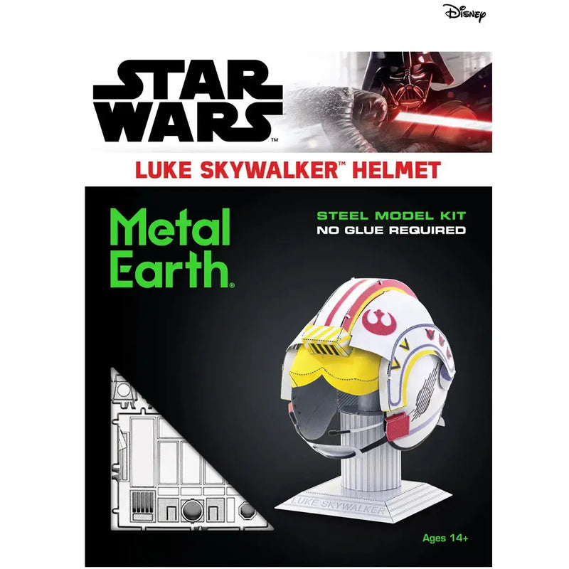 Star Wars - Luke Skywalker Helmet Figure Model Kit (Steel, Moderate Difficulty) - Fascinations - Metal Earth Series lets fans recreate the legendary Rebel pilot helmet worn by Luke Skywalker in his battles against the Empire. As the symbol of heroism and leadership, this helmet played a pivotal role in Luke’s journey as an X-Wing pilot and Jedi Knight. This moderate-difficulty model kit faithfully captures the helmet’s intricate design and structural details, making it a must-have collectible for Star Wars fans.