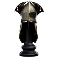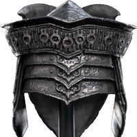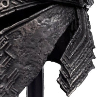 The Helm of the Ringwraith of Harad Prop Replica Figure from The Hobbit: The Battle of the Five Armies is a meticulously crafted 1:4 scale collectible, expertly designed by Weta Workshop. As part of the Helm Series, this stunning piece captures the ominous and intricate design of the Haradrim Ringwraith's helm. Featuring exceptional detailing, the replica brings the dark, mysterious aura of the Ringwraith to life, providing fans and collectors with a tangible connection to the world of Middle-earth.