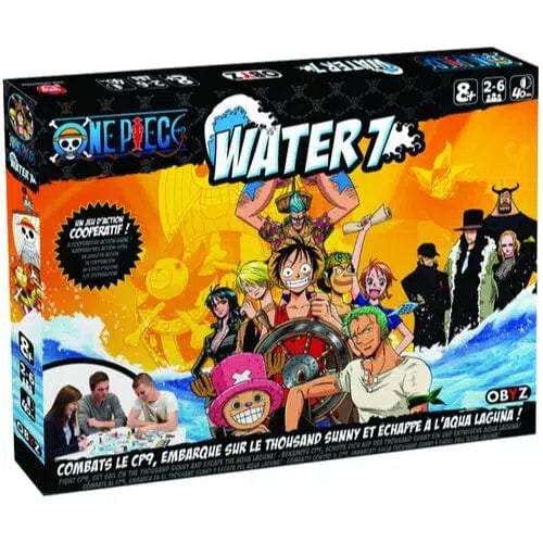 In this new cooperative board game Luffy and his crew arrive in Water 7, the famous island-city with its seven naval shipyards. They soon realize that their boat, the Going Merry, is not reparable! They will have to find material in order to build a new one. But the CP9 will do everything to stop their progress and have kidnapped Robin. Will they be able to save their friend, build the Thousand Sunny and board it before the Aqua Laguna, a gigantic wave, invades the game?
