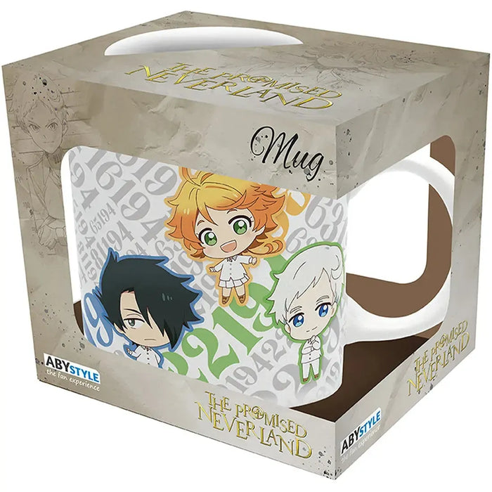 Bring the world of The Promised Neverland into your daily routine with this charming 11 oz. ceramic mug featuring chibi versions of Emma, Norman, Ray, Don, Gilda, and Phil. ABYstyle captures the innocence and determination of the Grace Field House children with expressive artwork set against a backdrop of their distinctive identification numbers—an iconic detail fans will instantly recognize. The contrast between the bright character designs and the subtle numerical pattern creates a visually striking aesthetic that pairs perfectly with the series’ emotional depth.