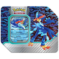 Powerful Pokémon ex in a Dazzling Tin: Command a rousing performance on the battlefield with the fully evolved Quaquaval ex, showcasing dazzling dance moves and powerful attacks.