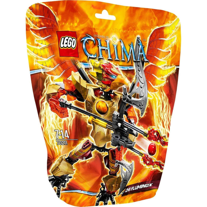 Introducing the LEGO Legends of Chima - CHI Fluminox (70211)! Join the Phoenix tribe's agile leader, Fluminox, as he harnesses the power of CHI to become a magnificent buildable warrior. Prepare for epic aerial battles with his impressive features and versatile combat abilities.