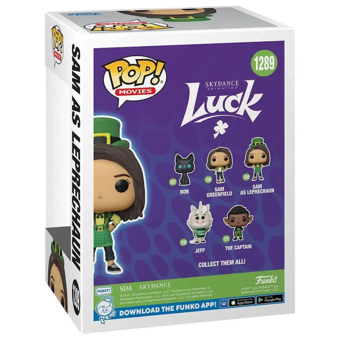 Stay optimistic with Pop! Sam as Leprechaun from Funko's Pop! Movies series, inspired by the animated film Luck. This charming figure captures Sam's spirited attempt to turn her bad luck around, dressed as a leprechaun. Standing at approximately 4.75 inches tall, this vinyl figure is a delightful addition to any collection. Complete your Luck set and bring a touch of magic to your collection with Pop! Sam as Leprechaun.