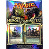 Dual Theme Decks: "Heroes vs. Monsters" comprises two preconstructed theme decks, each embodying distinct forces of the multiverse. One deck focuses on the valiant heroes (white/red), while the other champions the fearsome monsters (red/green) lurking across the planes, tied intricately to the themes of the fall set Theros.
