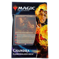 This Red-themed deck offers a unique blend of speed, assertiveness, and daring tactics. Chandra's affinity for casting spells with abandon finds resonance in the strategy, creating an environment where fast-paced aggression prevails. Join forces with Chandra and a diverse array of Red creatures, including phoenixes, fire mages, and hellions, as you embody the essence of Red mana and ignite the battlefield with flames of triumph. Experience the thrill of Chandra, Flame's Catalyst, as she leads you through the intense landscape of Magic: The Gathering Core Set 2021.