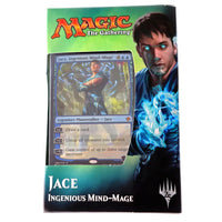 Planeswalker Focus: Jace, Ingenious Mind-Mage takes center stage in this Magic: The Gathering deck, showcasing his strategic brilliance as a planeswalker.
