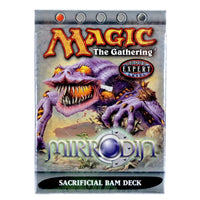 Sacrificial Bam Theme Deck: A part of Mirrodin, this themed deck showcases the blend of red and black colors, focusing on artifact-sacrificing gameplay mechanics.