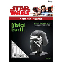 Star Wars - Kylo Ren Helmet Figure Model Kit (Steel, Moderate Difficulty) - Fascinations - Metal Earth Series brings the fearsome and battle-scarred helmet of Kylo Ren to life in a highly detailed steel model. As a symbol of his allegiance to the dark side and connection to Darth Vader, Kylo Ren’s helmet features intricate engravings and a bold, menacing structure, making it an iconic artifact in the Star Wars universe. This moderate-difficulty model kit allows fans and collectors to assemble a stunning three-dimensional replica, making it a must-have addition to any Star Wars collection.