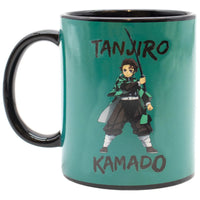 Design: Inspired by Tanjiro Kamado’s signature haori, this mug features a dark teal and black color scheme, with Tanjiro's image and the Demon Slayer logo printed on opposite sides.