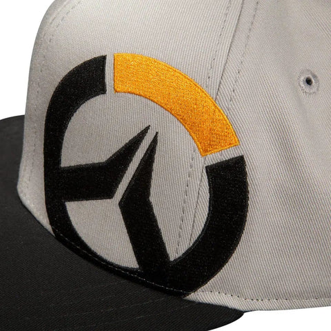 • THE WORLD NEEDS HEROES - Gray snapback hat featuring oversized Overwatch symbol embroidered on front of cap; Overwatch logo embroidered on back; contrasting black top brim and orange under brim