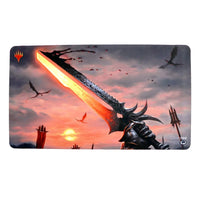 Elevate your Magic: The Gathering gaming experience with the Sword of Sinew and Steel Playmat from Ultra PRO, featuring artwork from the Modern Horizons set. Designed to provide protection and style, this playmat boasts a soft fabric top that safeguards your gaming cards during tabletop gameplay. Measuring approximately 24" X 13-1/2", it also doubles as a decorative oversized mouse pad, perfect for computer and laptop workstations.