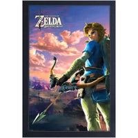 Step into the wild beauty of Hyrule every time you enter the room with this striking framed poster featuring Link in full hero mode. Captured in a dynamic pose with his bow drawn and ready, Link stands against a backdrop that radiates the epic atmosphere of Breath of the Wild. The image evokes adventure, determination, and the timeless spirit of a true legend.