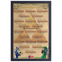 Immerse yourself in the musical magic of Hyrule with "The Legend of Zelda: Ocarina of Time - Songs of the Ocarina Framed Poster" from Pyramid America. This unique poster beautifully showcases the iconic songs that Link plays on the ocarina in the legendary game, alongside the button sequences for the N64 controller.