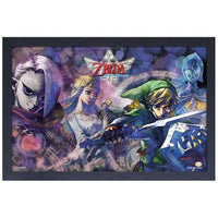 Immerse yourself in the epic world of The Legend of Zelda: Skyward Sword with this beautifully framed poster from Pyramid America. Featuring the iconic characters Link, Zelda, Ghirahim, and Fi, this dynamic artwork brings the adventure and drama of the game to life. The poster measures 18.25 x 12.25 inches and is enhanced with a protective gel coat, adding texture and durability to the vibrant print.