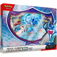 The Pokémon TCG - Palafin ex Booster Pack Gift Box brings a heroic twist to your collection. Featuring Palafin with its signature Zero to Hero Ability, this set showcases the evolution of Palafin as it transforms into the mighty Palafin ex. This unique transformation adds a strategic depth to gameplay, making it a valuable addition to any collection or battle deck. You'll receive Finizen, Palafin, and Palafin ex as foil promo cards, each ready to shine in your deck for competitive play.