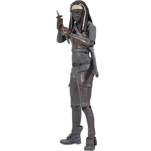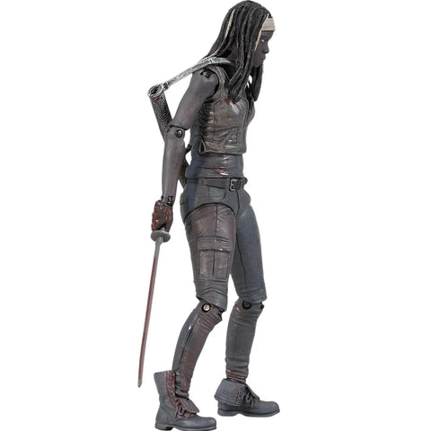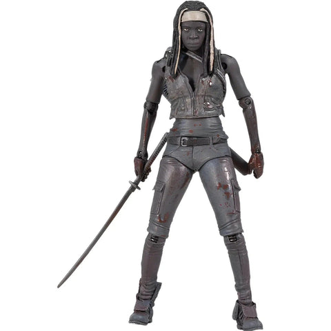 Michonne: The enigmatic stranger who saves Andrea from walkers, Michonne is a quiet yet fierce warrior. This action figure of Michonne features an impressive 24 points of articulation, allowing for dynamic poses and scene recreation. It comes with a removable poncho, katana sword, and katana sheath, showcasing her iconic appearance.