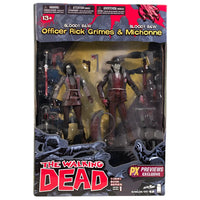 Introducing the Black & White Rick Grimes and Michonne 2-Pack Action Figures from "The Walking Dead (Comic)" by McFarlane. These exclusive, blood-spattered collectibles bring back the iconic duo from the series, packed with detail and authenticity.