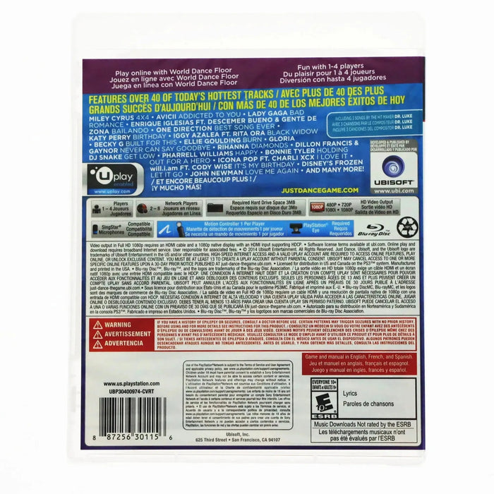 Experience the excitement of dancing to the beat of the latest hits and classic tunes with Just Dance 2015 for PlayStation 3. Boasting over 40 chart-topping tracks, this installment of the beloved franchise delivers hot moves and new features that guarantee an electrifying dance experience. From Pharrell Williams' "Happy" to Ellie Goulding's "Burn," groove along to the hottest hits of the year, or jam out to timeless favorites like "Walk This Way" by Run DMC & Aerosmith. Plus, with unique Tetris-inspired dance moves, there's never a dull moment on the dance floor.