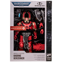The Khorne Berzerker comes equipped with weapon accessories, allowing you to further customize its look for your display or playtime. It also includes a base for stability and display purposes. All of this comes packaged in a Warhammer 40,000-themed window box, highlighting the figure's intricate details and making it perfect for both collectors and fans of the series. Whether you're looking to enhance your Warhammer collection or bring some chaos to your display, this Khorne Berzerker figure is an essential addition to any fan's set.