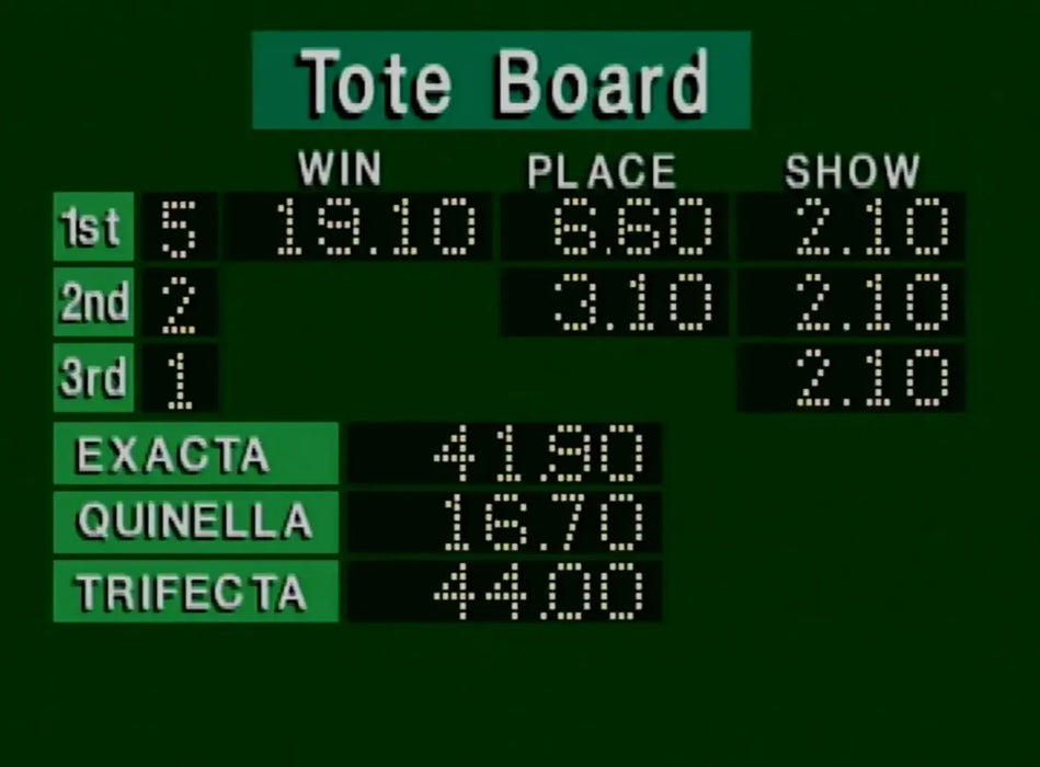 Bet, Win, Place or Show, plus Exacta, Quinella, or Trifecta. Start with $2,000 in funny money, and watch your bankroll grow...or shrink. Don't worry, you can go to the bank for more cash at any time.