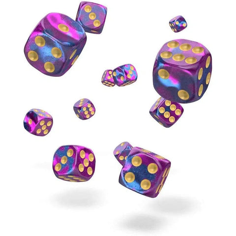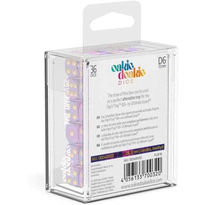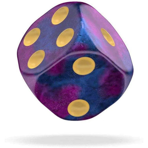 Enhance your gaming experience with Oakie Doakie's D6 12mm Dice in the mesmerizing Amethyst color. While most are familiar with the standard white cubes, these dice offer a vibrant twist with bi-color swirling in shades of blue and purple. The golden dots representing values add a touch of sophistication, making these technically tri-colored dice a standout choice for any game.