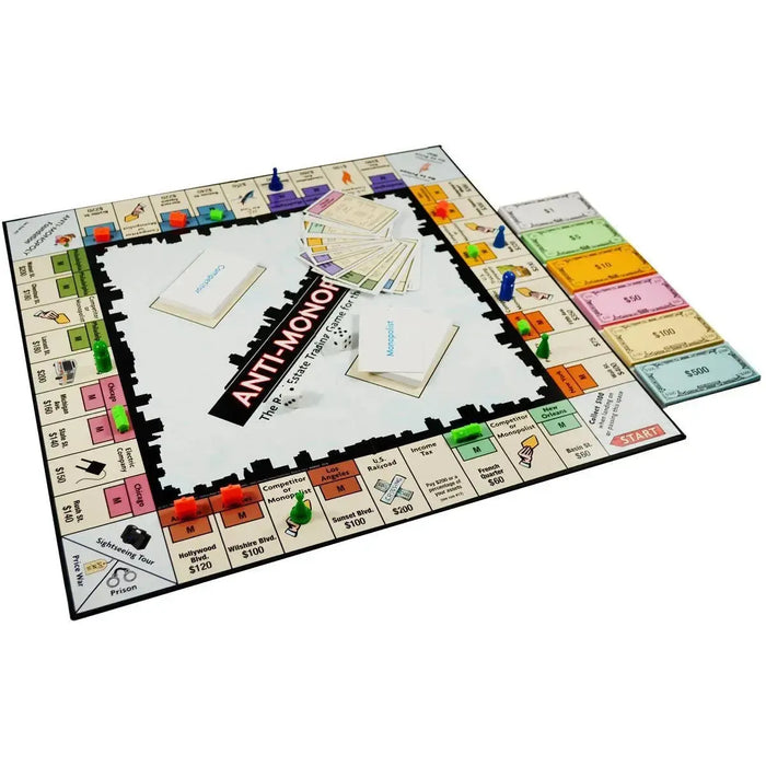 Challenge the norm and flip the rules in Anti-Monopoly, the modern twist on classic real estate games. This dynamic strategy experience pits competitors against one another in a unique economic face-off—Monopolists versus Competitors. With two different rule sets in one game, players can dive into the complexities of economic justice and fair market competition.