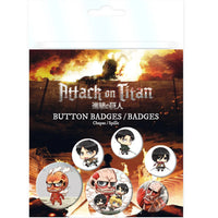 Officially Licensed: Authenticated Attack on Titan Characters Badge Pack, officially licensed merchandise for fans by ABYstyle.