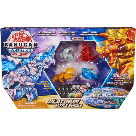 • Bakugan: This pack has everything you need to battle, including a Battle Mat, 2 Platinum Bakugan, 2 Core Bakugan, 2 BakuCores and more! Your Bakugan collection just became stronger than ever!