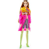 The BMR1959™ collection celebrates the fashion heritage of Barbie® and showcases how current trends influence the brand. These bold, fully posable dolls capture the diverse looks found in today's streetwear culture. From high-low fashion mixes, re-imagined '90s gear to juxtaposed patterns, textures, and silhouettes, this curated ensemble is all about personal expression and style. This BMR1959™ Barbie® doll sports a color block parka over her cropped tank and bike shorts. Bold details include green painted fingernails, statement eye liner and clear vinyl thigh-high boots with a neon block heel. Chunky, 90's-inspired blonde streaks and logo hair clips frame her face. This collectible fashion doll is fully articulated, comes in a streetwear-inspired shoebox and includes a BMR1959™ logo doll stand for displaying. Each Barbie® BMR1959™ doll features a unique look, so you can express your style with the whole crew. Doll cannot stand alone. Colors and decorations may vary.