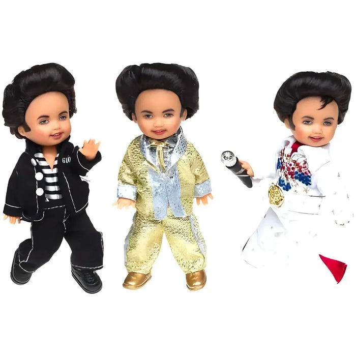 Get ready to swoon over the tiniest tribute to rock 'n' roll royalty with the Baby Elvis Presley Doll Figures from the Barbie Collectibles Series. Styled with flair and full of charm, this Collector Edition captures the magic of Elvis as a little heartthrob in the making. From his iconic pompadour hairstyle to a mini stage-ready outfit, this pint-sized legend brings nostalgia and sparkle to your display shelf.