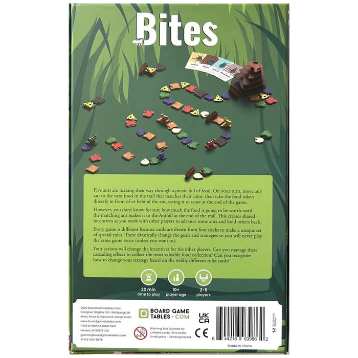 Bites is a delightful and strategic board game where players collectively control all the ants on the board, creating dynamic gameplay filled with unexpected alliances and clever moves. Designed for 2-5 players aged 10 and up, it’s the perfect game for family gatherings or competitive sessions with friends.