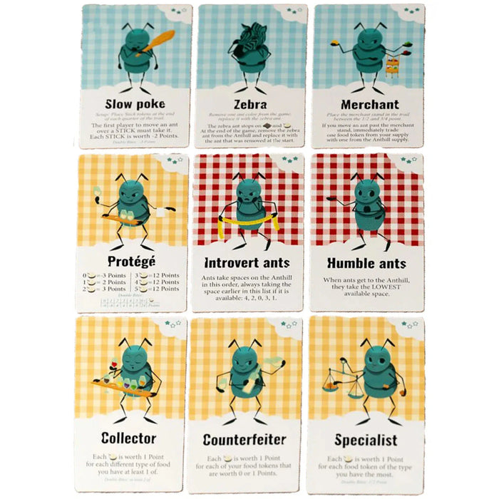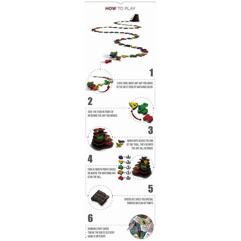 Game Type: A strategy-based board game with a unique ant trail and food collection theme.