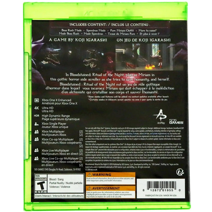 Immerse yourself in the dark and atmospheric world of "Bloodstained: Ritual of the Night" on Xbox One. Set in 19th century England, this gothic horror action RPG follows the journey of Miriam, an orphan cursed by an alchemist's spell. As her body slowly crystallizes, she must navigate a demon-infested castle to defeat the summoner, Gebel, and save humanity. Collect, craft, and upgrade an extensive arsenal of weapons and equipment to overcome the minions and bosses of hell that lurk within.