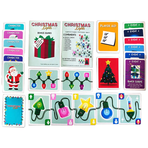 Get ready to untangle the fun with Christmas Lights, a competitive and lighthearted card game where players race to complete their sets of glowing holiday bulbs. It’s time to dig through the decorations, swap bulbs, and trade with fellow decorators in a lively challenge to be the first to finish two beautiful strands of lights.
