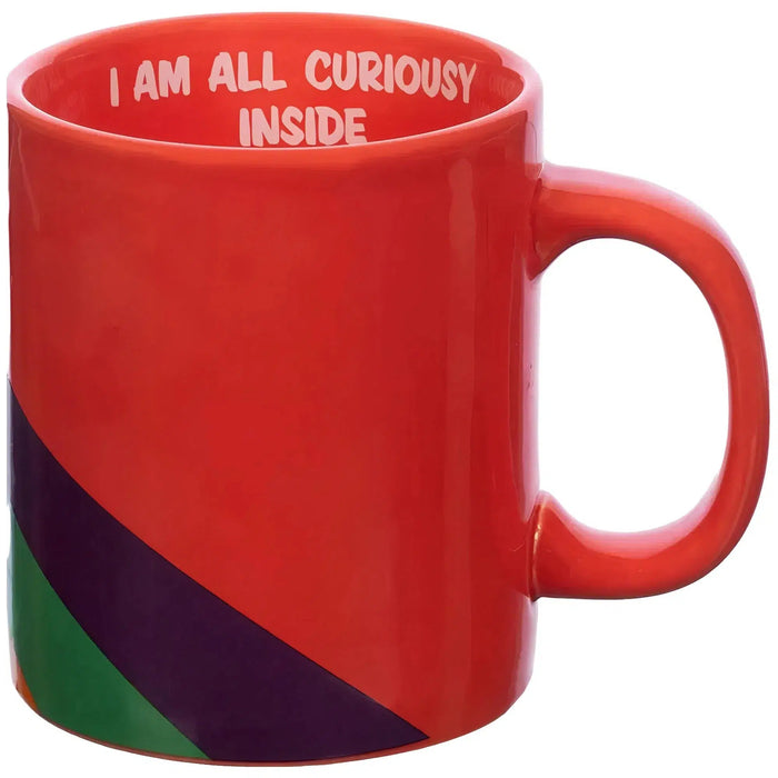Perfect for enjoying a hot cup of chocolate or your favorite beverage, this mug brings the quirky and adventurous spirit of Gravity Falls right to your kitchen. Inside, you'll find the phrase "I am all curiously inside," adding a delightful surprise with every sip.