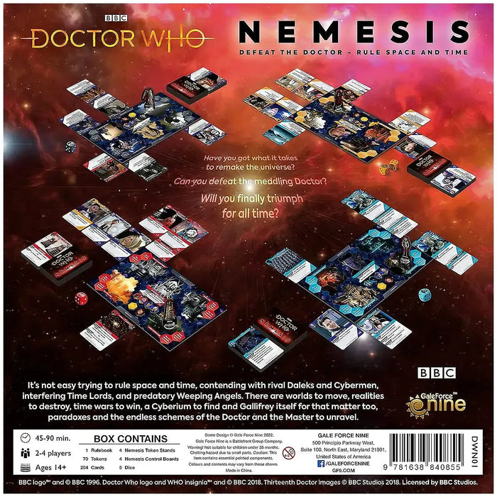 Step into the Whoniverse like never before in Doctor Who: Nemesis, where you're not saving the galaxy—you’re rewriting its destiny. This thrilling board game invites players to embrace their darker side, becoming iconic villains from the series and reshaping history to suit their own cosmic ambitions. Strategy and cunning are your greatest tools as you maneuver through time and space with one goal: absolute control.