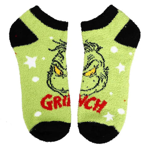 Bring a touch of holiday mischief to your wardrobe with the Dr. Seuss - The Grinch Ankle Socks (3 Pairs) by Bioworld. These playful socks feature designs inspired by the iconic Grinch, making them a perfect accessory for fans of Dr. Seuss’s beloved holiday tale. Whether you're embracing your festive side or channeling a little Grinchy spirit, these socks add charm and personality to any outfit.