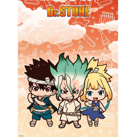 Cutting-Edge Design: This poster set showcases breakthrough designs featuring Senku, Kohaku, and Taiju in adorable chibi form. Additionally, there are posters featuring Senku, Taiju, Tsukasa, and Yuzuriha exploring the Stone World. The artwork is crafted with precision and attention to detail, immersing you in the world of Dr. Stone.