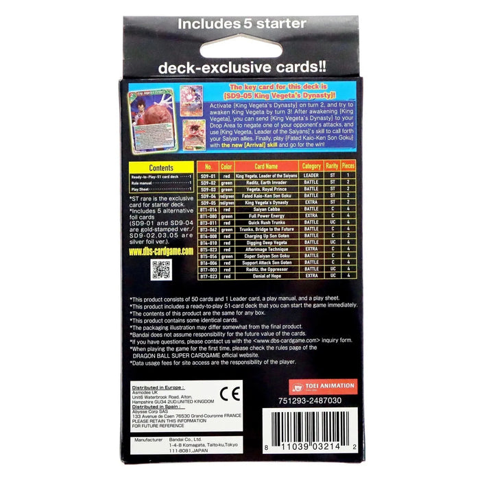 Beginner-Friendly Starter Deck: Embark on your Dragon Ball Super Card Game journey with the King Vegeta Starter Deck - Saiyan Legacy, tailor-made for beginners. This deck provides an ideal entry point for newcomers, ensuring an accessible and enjoyable gaming experience.