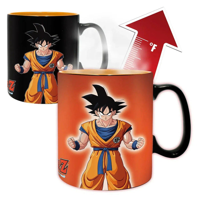Goku Heat-Change Design: The mug features a unique heat-change design that showcases Goku's transformation. When hot liquid is poured into the mug, the background changes from black to red, mimicking Goku's power-up.