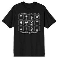 Gear up for your next Dungeons & Dragons adventure with the Dungeons & Dragons - Choose Your Class Unisex Tee by Bioworld. This versatile and comfortable tee is designed to fit both men and women, allowing everyone to show their love for the iconic tabletop role-playing game. Made from breathable and lightweight fabric, it offers superior softness for all-day comfort. Take care of your tee easily by machine washing it cold with like colors. Remember to use only non-chlorine bleach when needed and tumble dry it on low heat. Avoid ironing if decorated and skip the dry cleaning process. Embrace your inner adventurer and let the world know your chosen class with this must-have D&D tee.