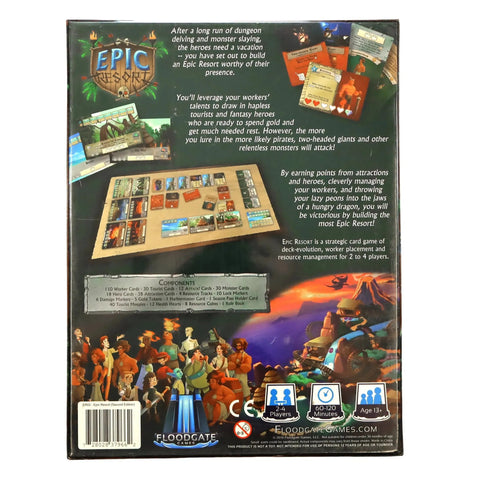 Embark on a strategic journey with Epic Resort the Board Game by Floodgate Games. Build a vacation haven for weary heroes, leveraging unique talents and attractions. Beware of monsters and pirates, as success attracts challenges. Earn points strategically, manage workers efficiently, and time your moves for victory. Will you construct the most Epic Resort, balancing hero defense and workforce management in this thrilling adventure? It's time for strategic gameplay, resource management, and an exciting quest for the ultimate vacation destination!