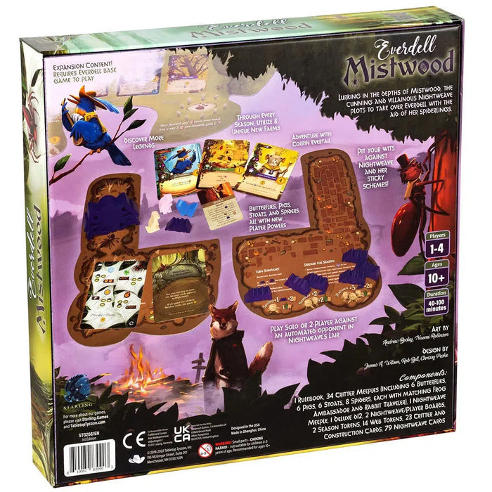 With unpredictable challenges and powerful new allies, Everdell: Mistwood expands the world with depth and tension. Will you outmaneuver Nightweave and restore peace, or will she ensnare Everdell in her web?