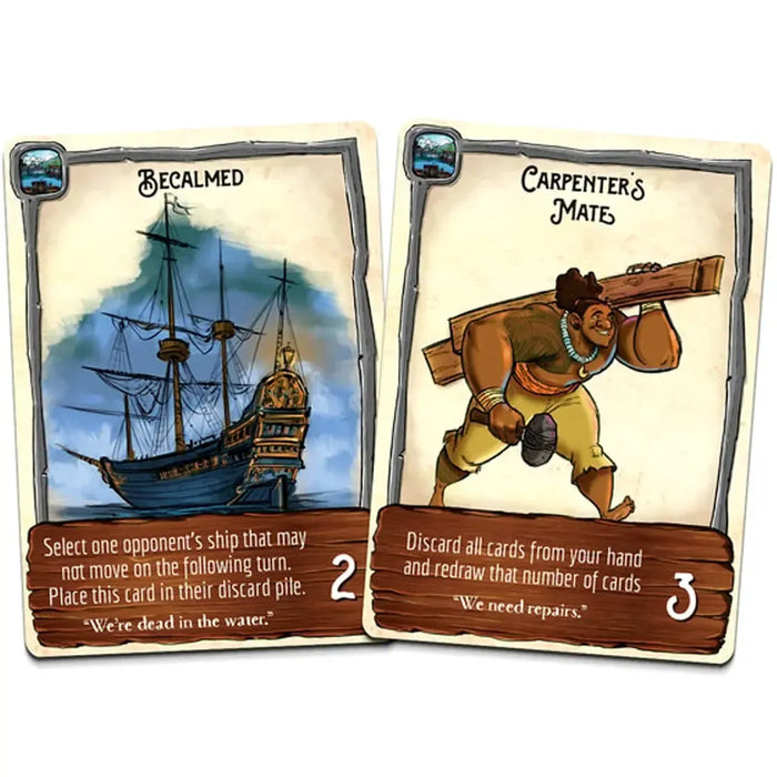 Strategic pirate-themed adventure gameplay: Players race their ships along trade routes, upgrading decks and outmaneuvering rivals in a thrilling contest for treasure.