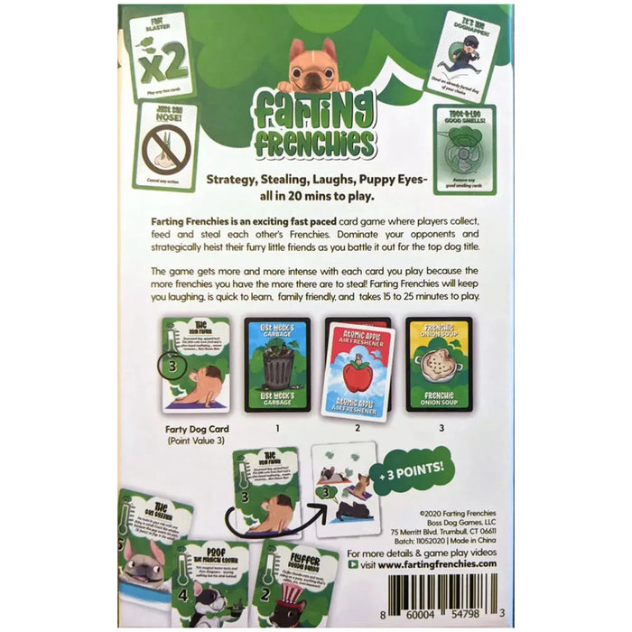 Get ready for a wild and wacky competition in Farting Frenchies, the fast-paced card game where players collect, feed, and steal adorable French Bulldogs in a battle for top dog supremacy! With every card played, the game heats up—the more Frenchies you have, the bigger the target on your back!