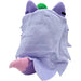 Striking Purple and Green Hair Combo: Styled with a thick mane of light purple and an eye-catching green bang that gives her plush form attitude and flair.
