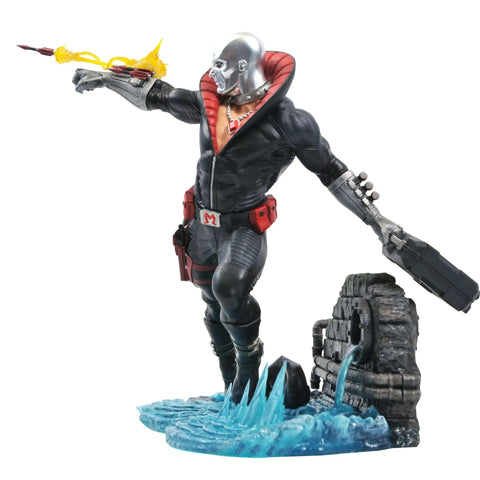 The G.I. Joe - Destro Figure from Diamond Select Toys’ Gallery Diorama Series brings a dynamic new addition to your collection. This striking diorama captures the essence of the classic villain from G.I. Joe: A Real American Hero. Standing approximately 10 inches tall, Destro is depicted in a dramatic pose, firing a wrist missile as he escapes through an underground river. The figure’s detailed sculpting and vibrant paint applications bring this iconic character to life with impressive accuracy.